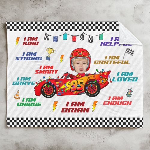 Custom Kid Face Car Toys Affirmation Gift – Personalized Photo Blanket Big Size